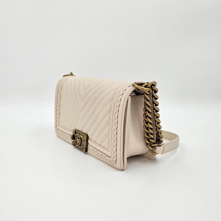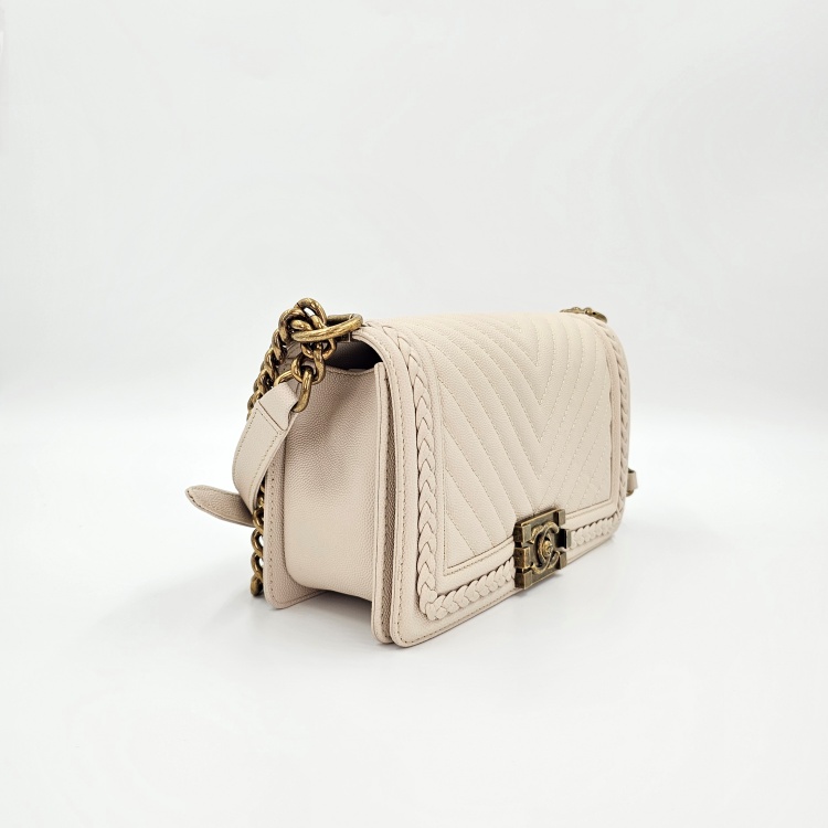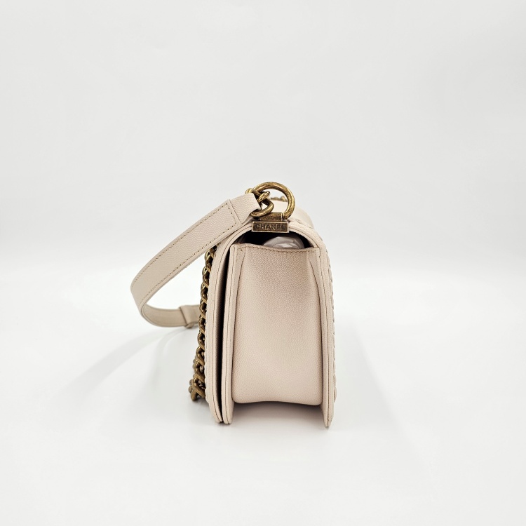 그레인 카프스킨(캐비어) 가죽의 질감과 퀼팅감이 잘 유지되어 있는 상품입니다.