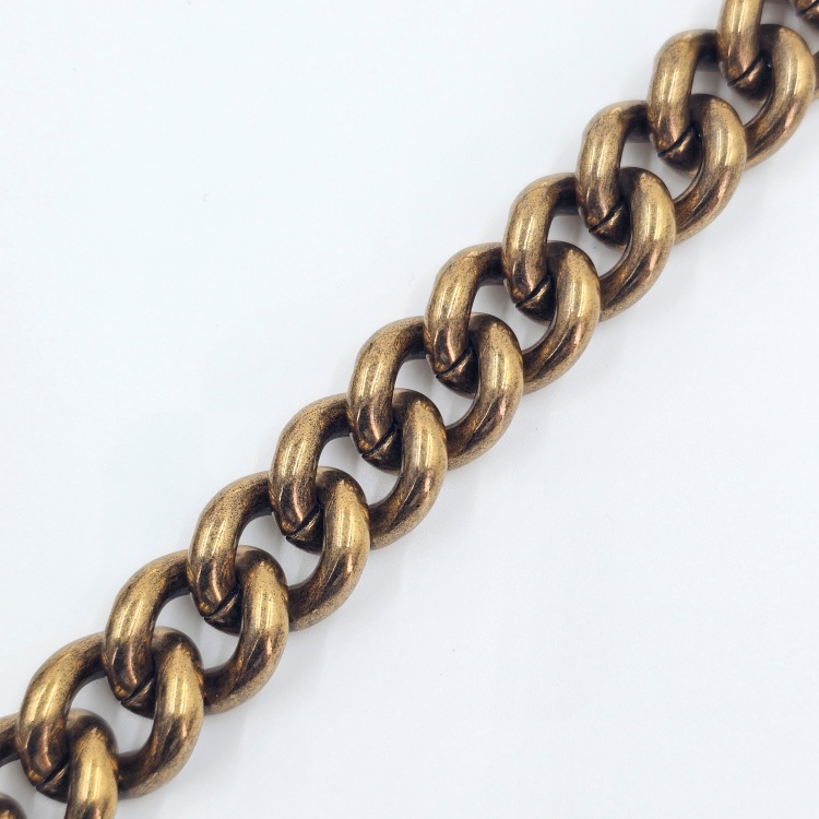 정면에 위치한 잠금 장치 디테일과 체인 스트랩에는 옅