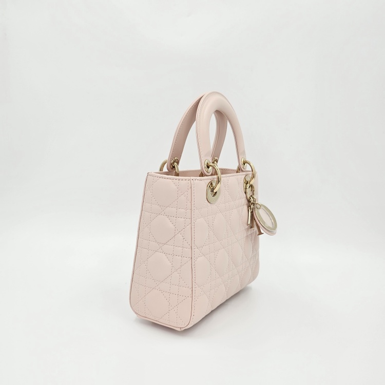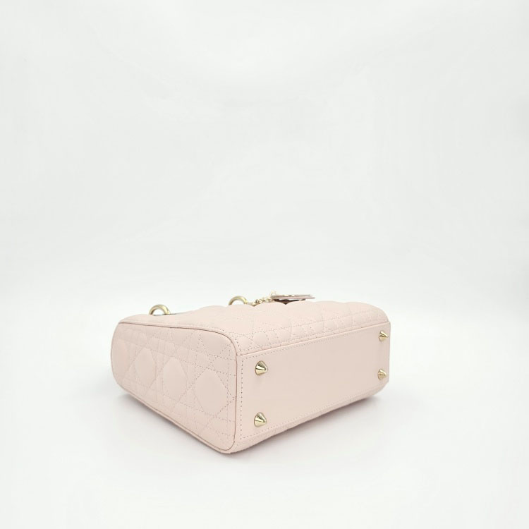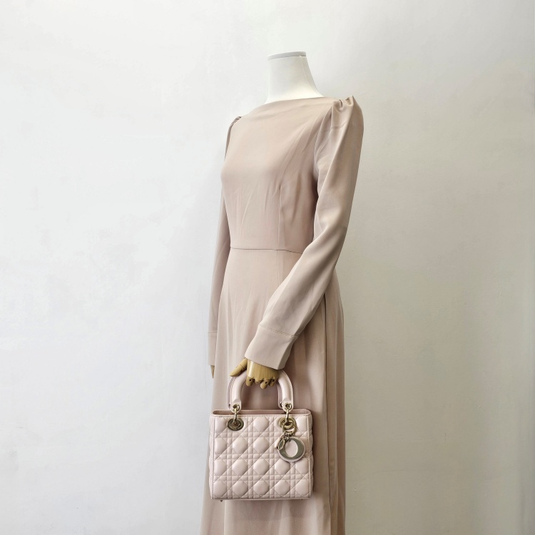 색상 / 소재 : 핑크 계열/램스킨(양가죽), 핑크 계열/스웨이드 내피, 금장 하드웨어