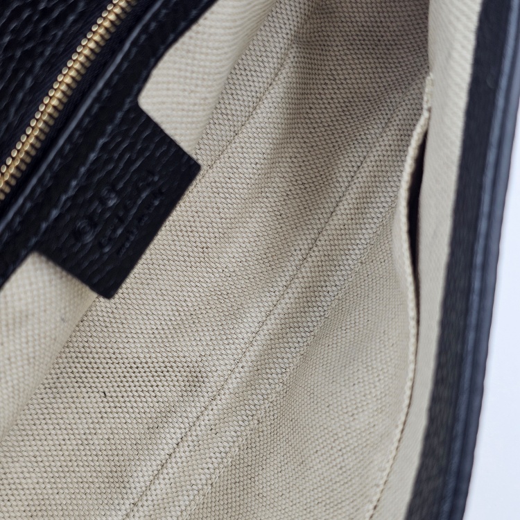 색상 / 소재 : 블랙/소가죽, 베이지 계열/면 캔버스 안감, 금장 하드웨어