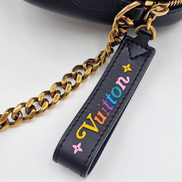 정면에 위치한 LV로고 디테일과 안쪽의 여닫이 금속에는