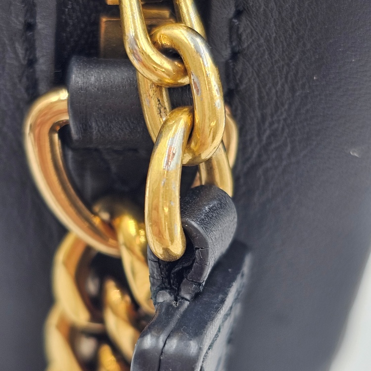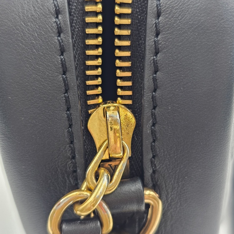정면에 위치한 LV로고 디테일과 안쪽의 여닫이 금속에는 자연스러운 정도의 생활감이 있습니다.
