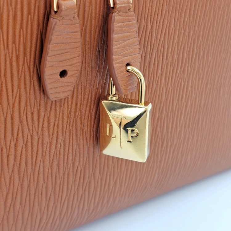 금속 로고 자물쇠 디테일에 잔 찍힘과 기스감이 있으나 미세한 정도이며,
