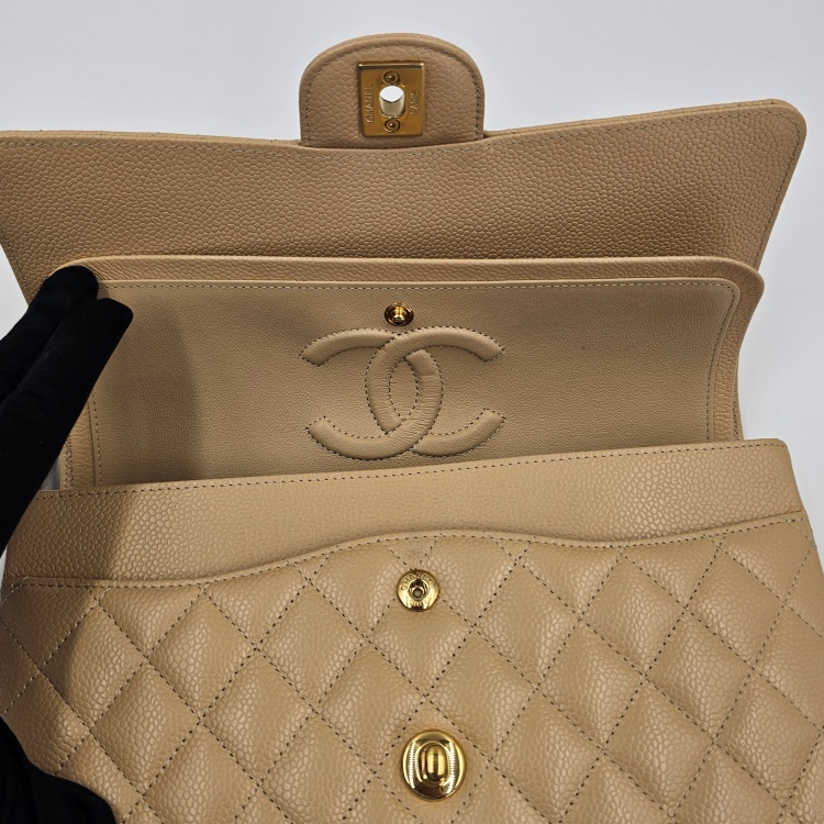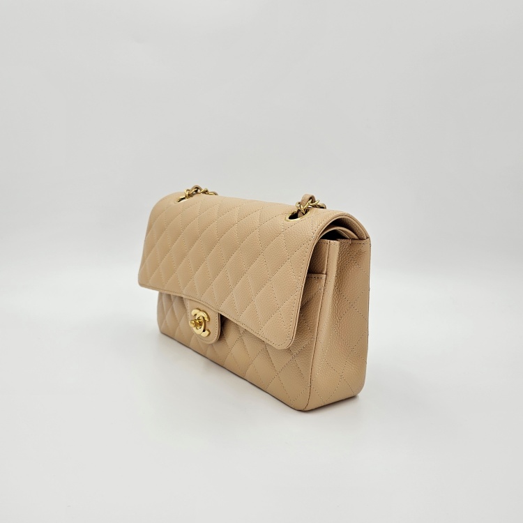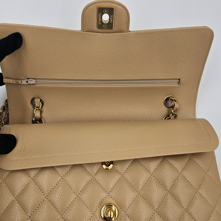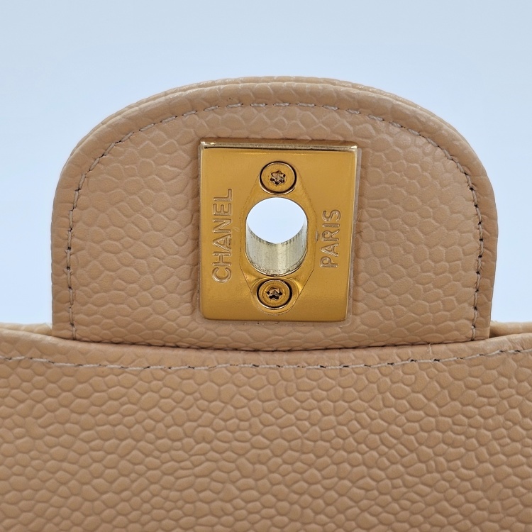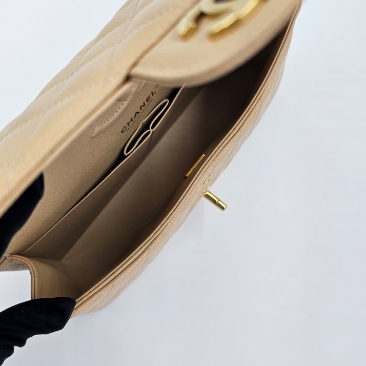 색상 / 소재 : 베이지/그레인 카프스킨(캐비어), 베이지/카프스킨 내피, 금장 하드웨어