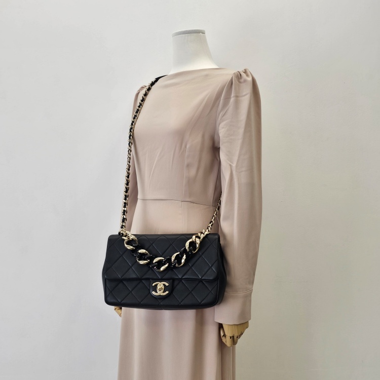 정면에 위치한 CC로고를 비롯한 금속 디테일에 잔 기스감이 옅게 확인됩니다.