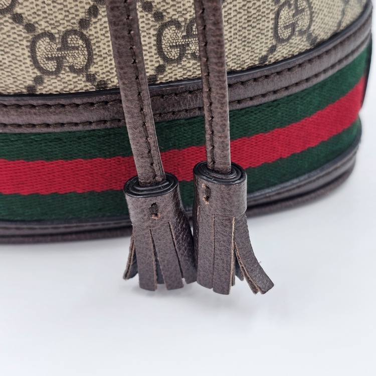 정면의 태슬 장식에는 약간의 가죽 벌어짐이 있습니다.