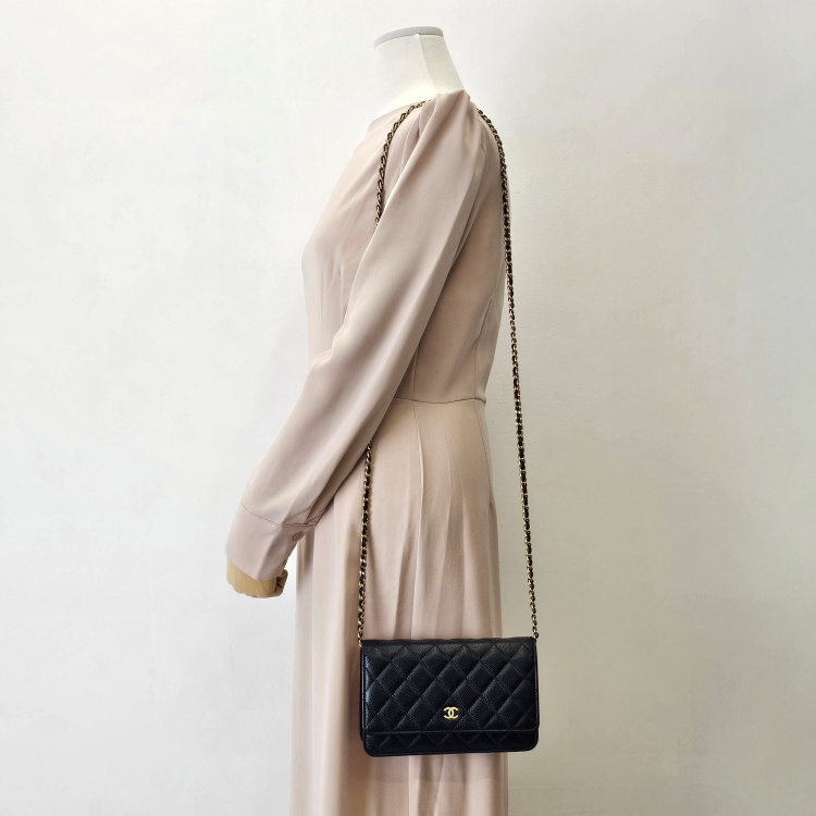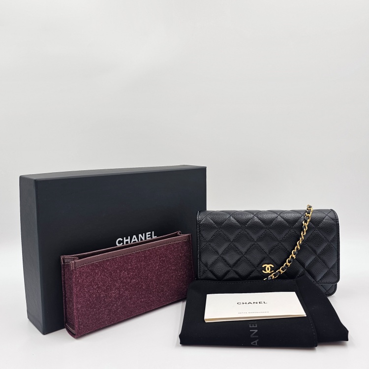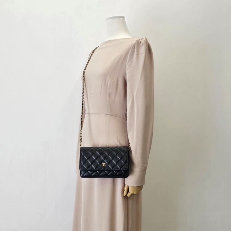 그레인 카프스킨(캐비어) 소재의 질감과 퀼팅감이 잘 유지되어 있습니다.
