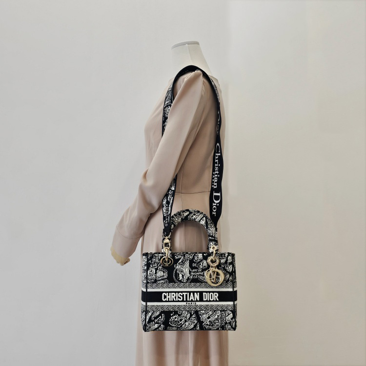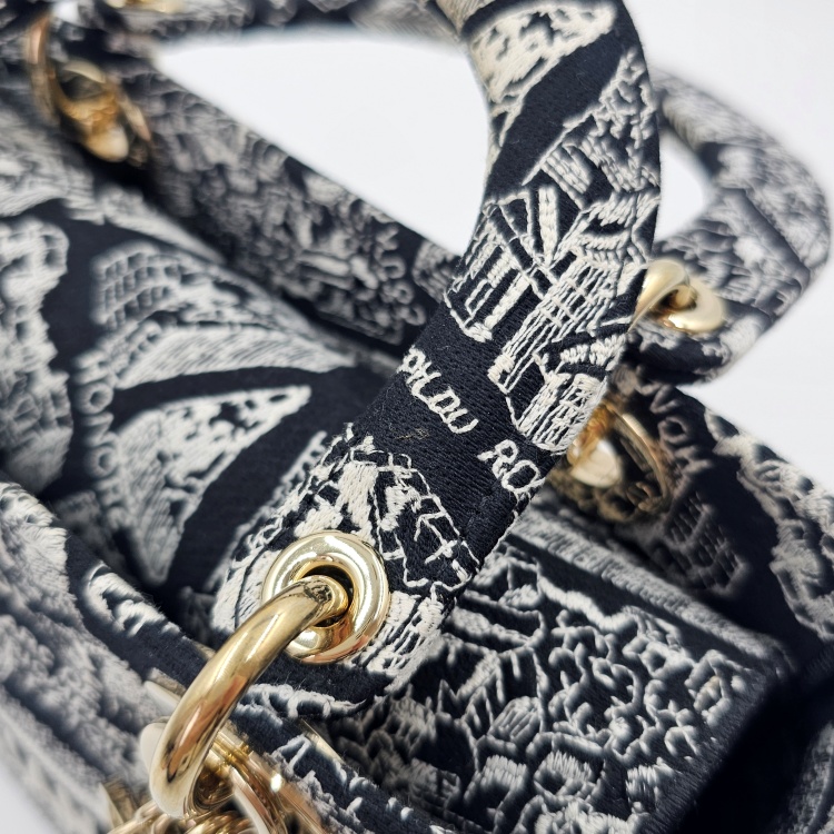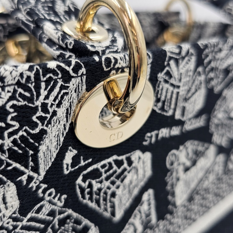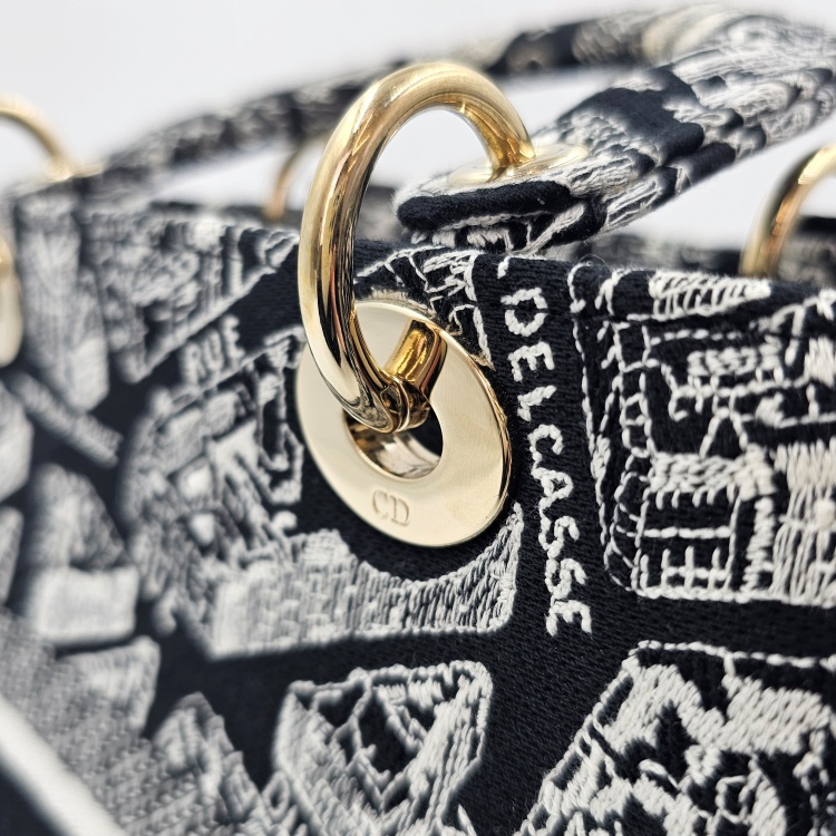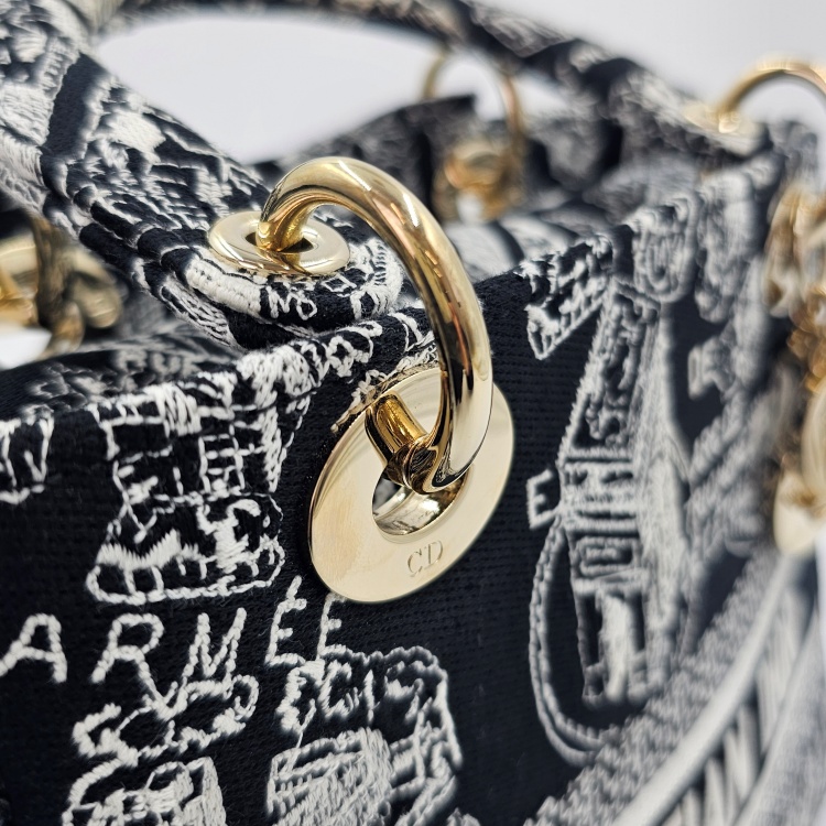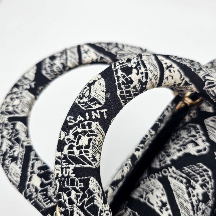 색상 / 소재 : 블랙&화이트계열/자수 패브릭, 블랙&화이트계열/자수 패브릭, 금장 하드웨어