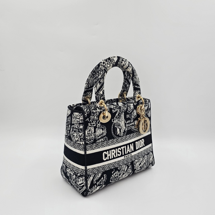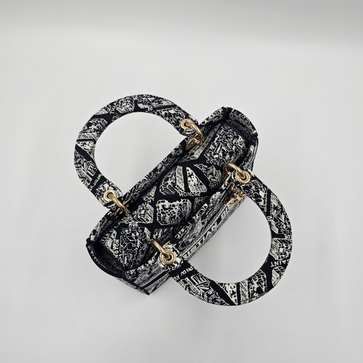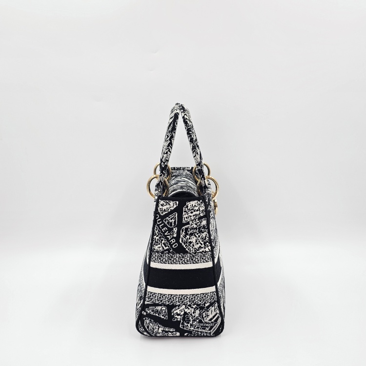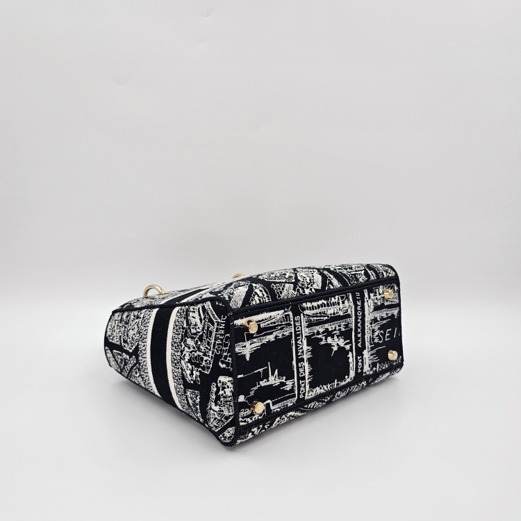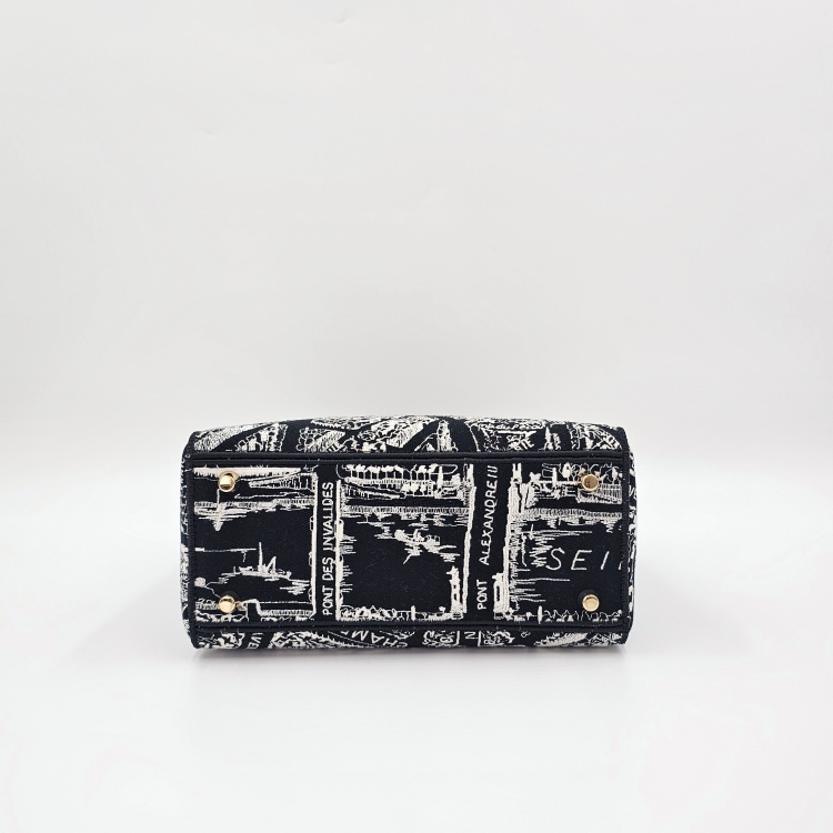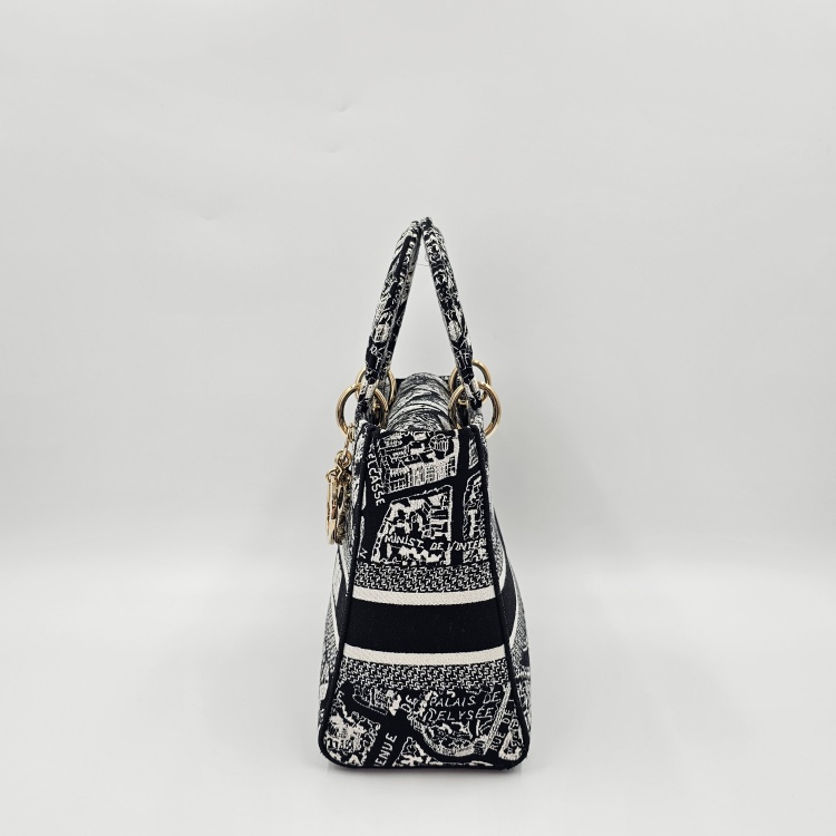 블랙&화이트계열/자수 패브릭, 금장 하드웨어