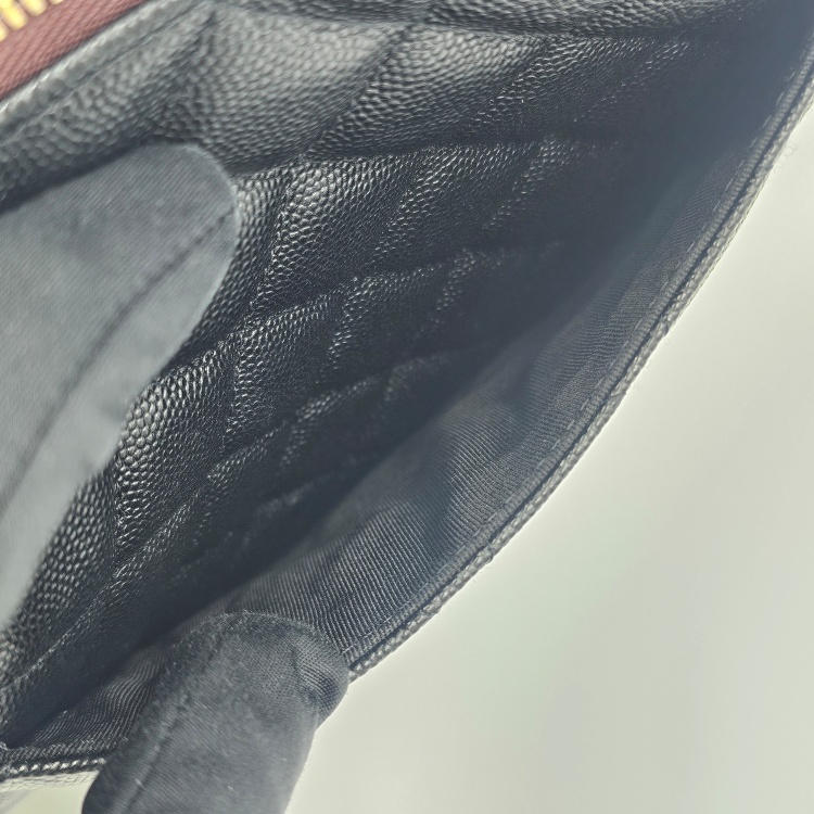 색상 / 소재 : 블랙계열/그레인 카프스킨(캐비어), 버건디 계열/폴리에스터 안감, 금장하드웨어