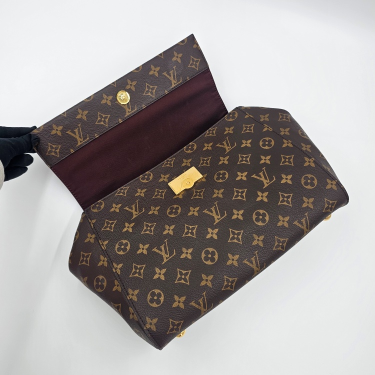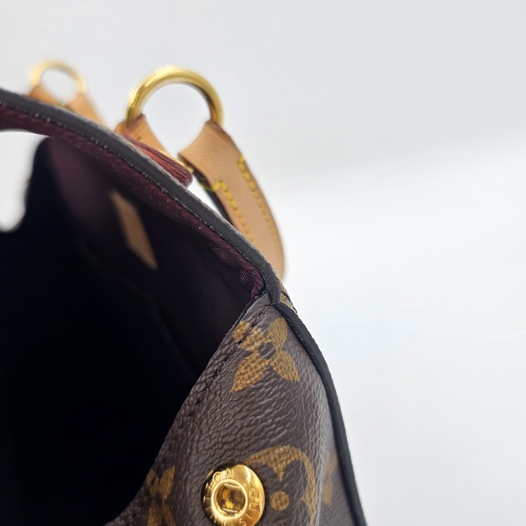 색상 / 소재 : 브라운 계열/모노그램 코팅 캔버스, 버건디 계열/면캔버스 안감, 금장 하드웨어