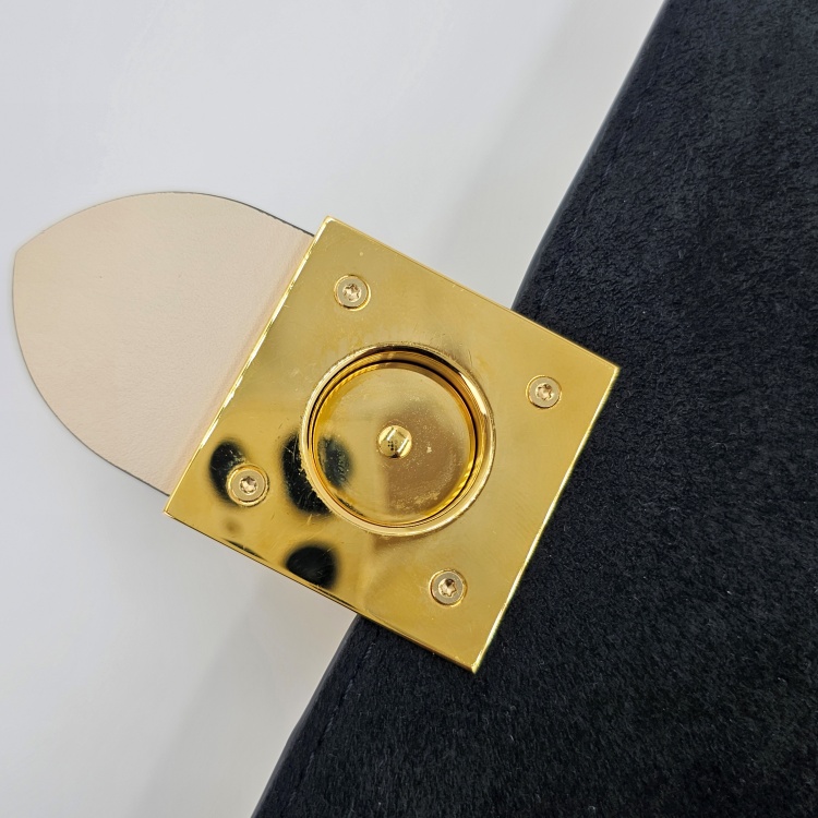 정면에 위치한 자물쇠 디자인의 금속 디테일에는 잔기스감과 잔 찍힘이 다소 확인됩니다.