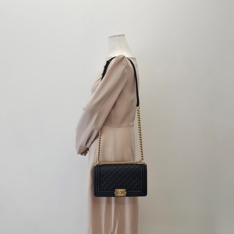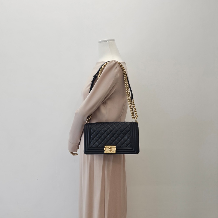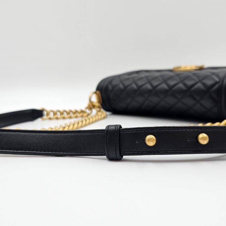 색상 / 소재 : 블랙/양가죽(램스킨), 블랙/폴리에스터 안감, 빈티지 금장 하드웨어