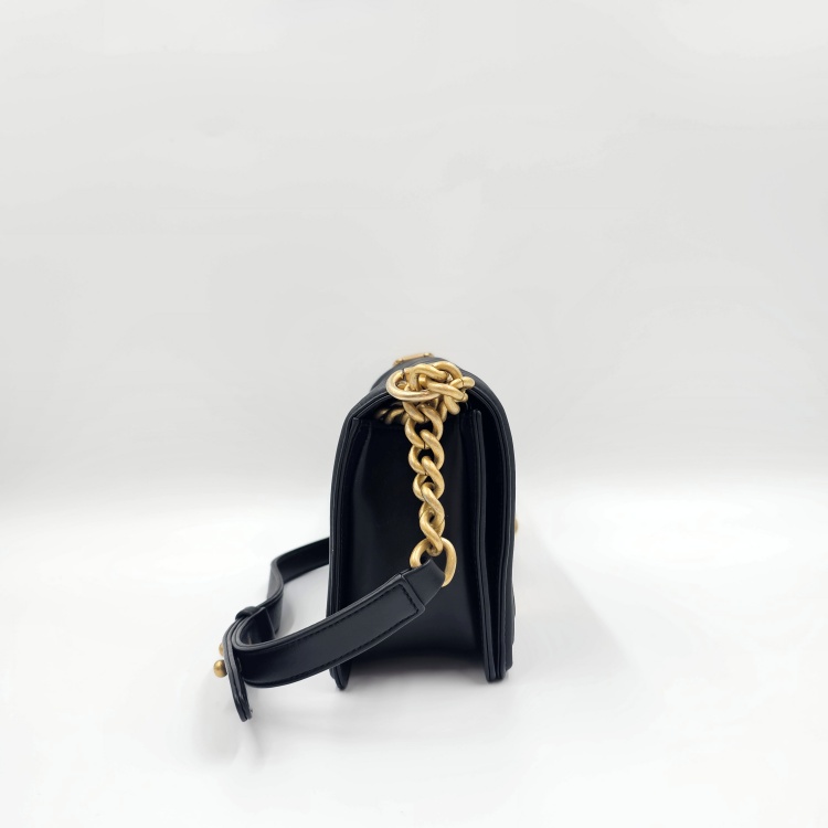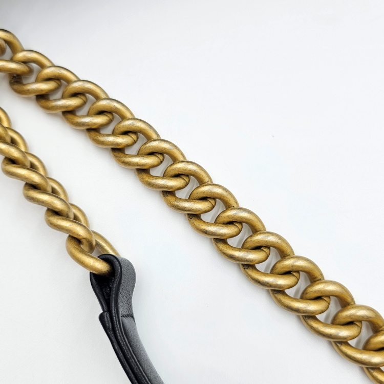 정면에 위치한 잠금 장치 디테일과 체인 스트랩에는