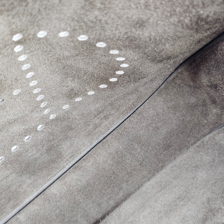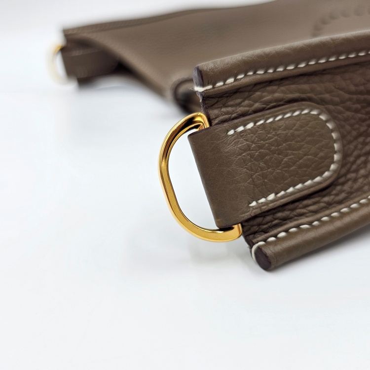 바디 정면 H 펀칭 디테일 중앙에 약간의 가죽 눌림이 있으나