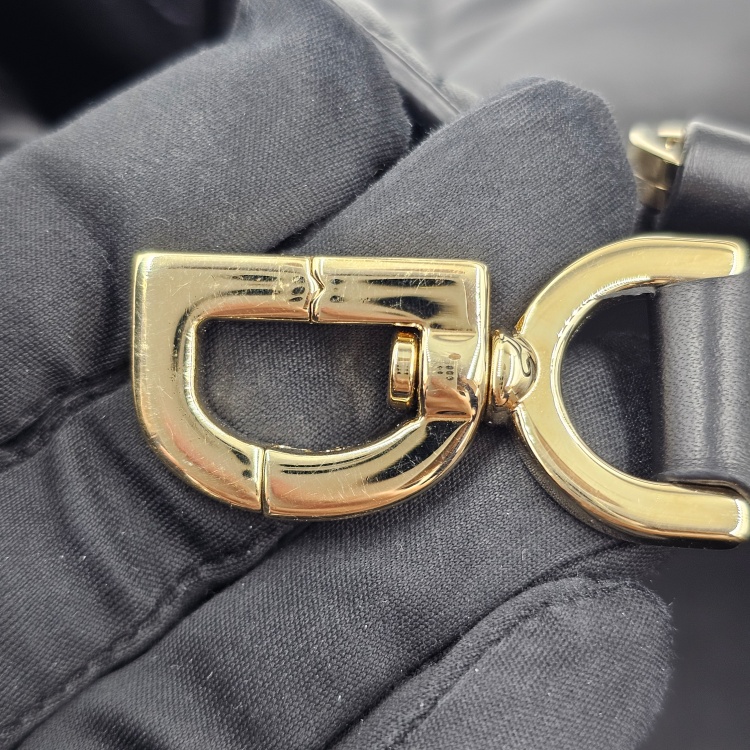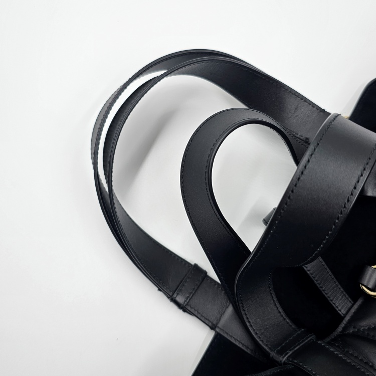 정면에 위치한 로고 참 장식과 스트랩 고리 등을 비롯한 금속 디테일에는