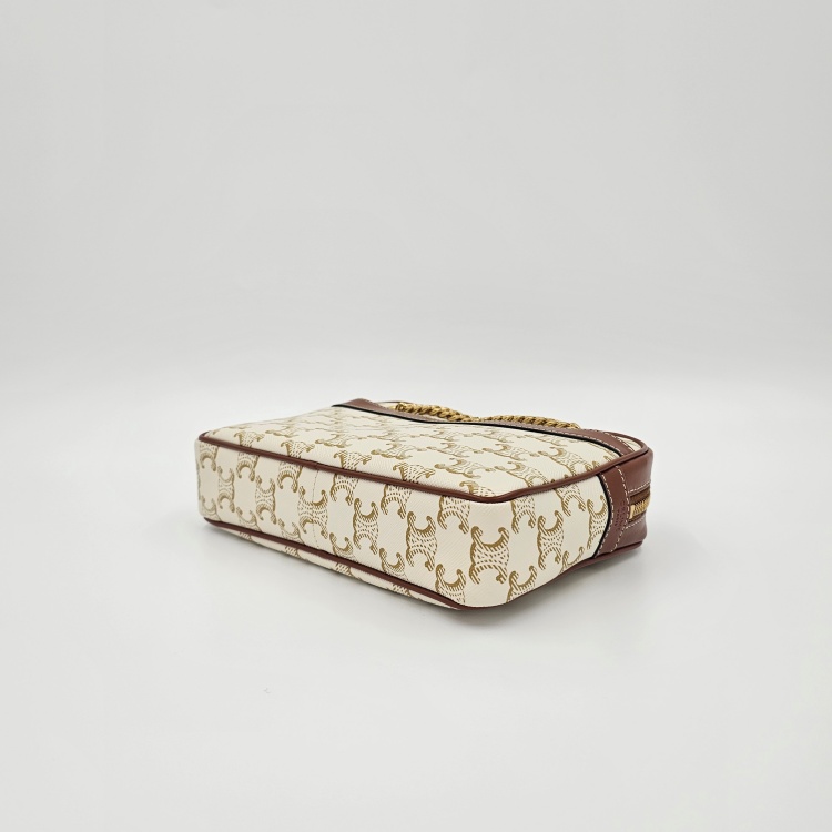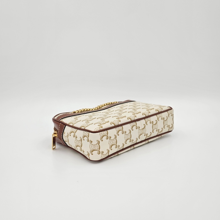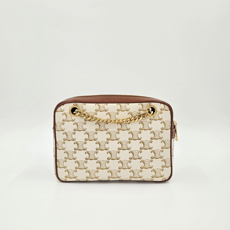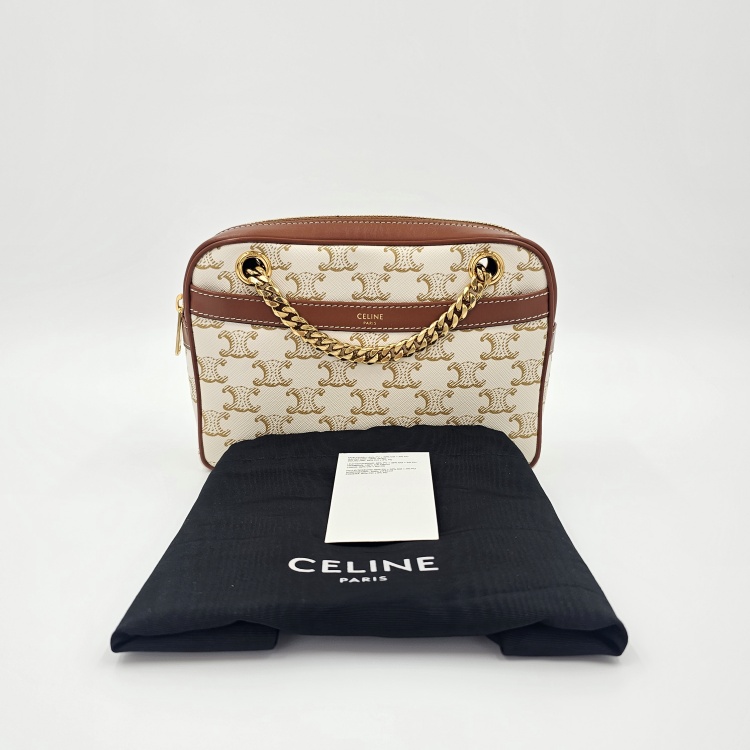 색상 / 소재 : 크림 베이지 계열/트리오페 코팅 캔버스, 브라운 계열/면캔버스 안감, 금장 하드웨어