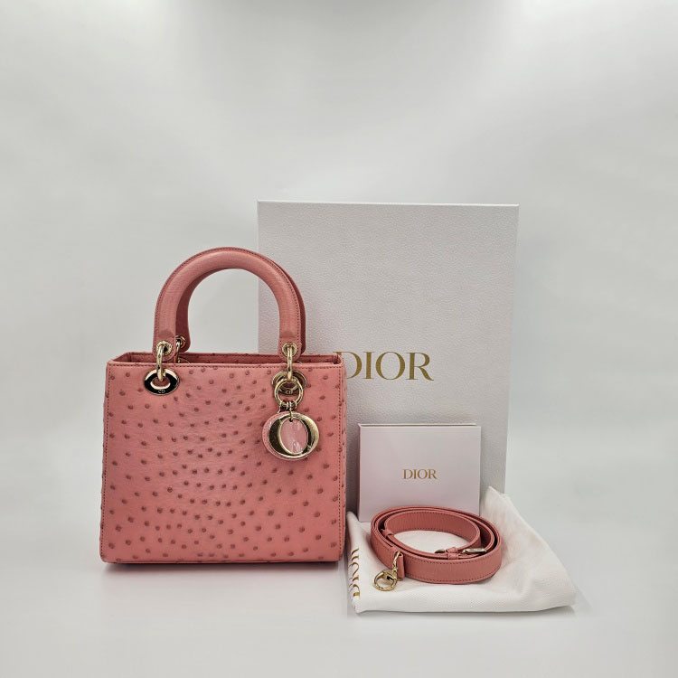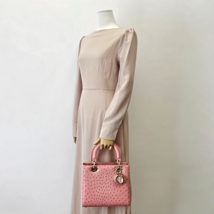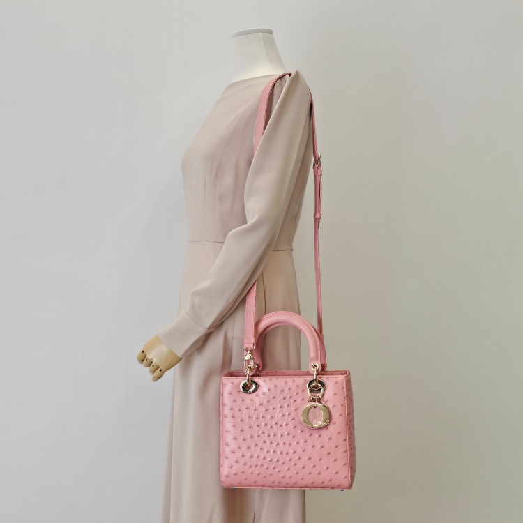 색상 / 소재 : 핑크 계열/오스트리치(타조가죽), 핑크 계열/스웨이드 내피, 금장 하드웨어