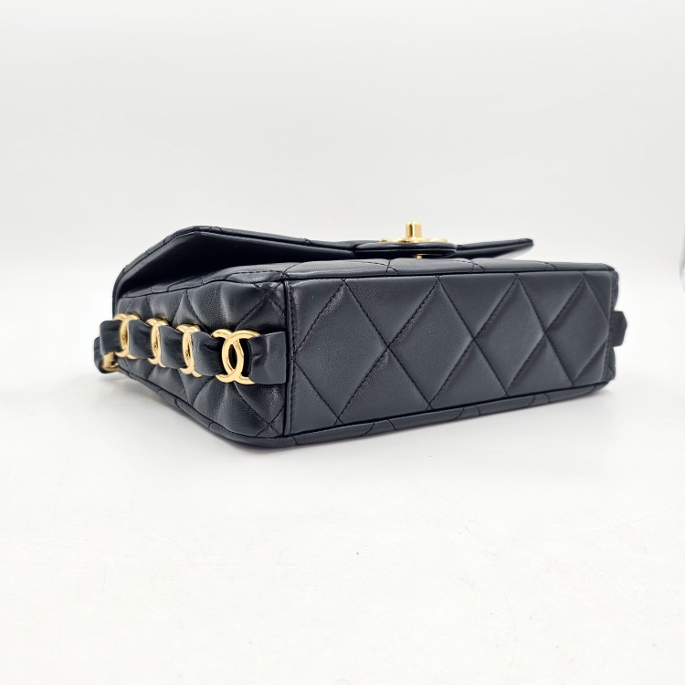 정면에 위치한 CC로고 디테일과 여닫이 금속에는 최소한의 생활감 정도가 있습니다.